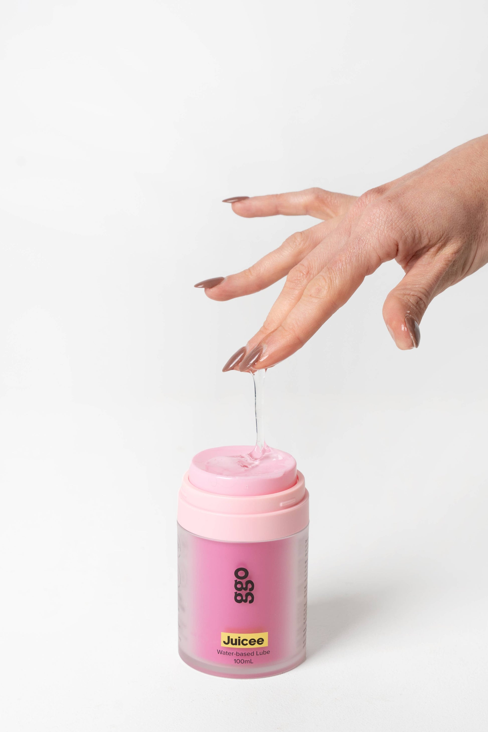 Juicee is a water-based lubricant that plays as well with toys as it does with bodies. Smooth, scentless and pH friendly for a very happy Yoni.