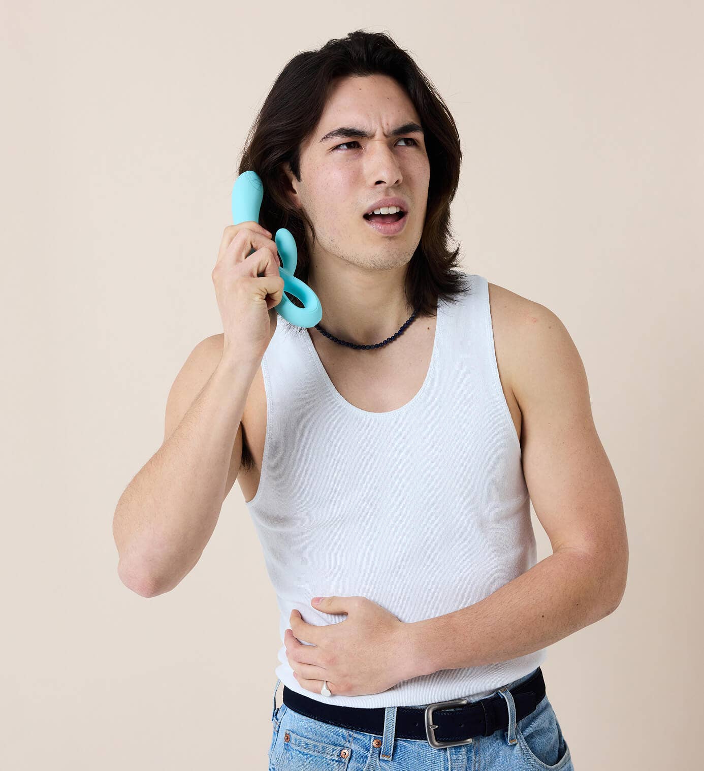 If external stimulation becomes too intense, simply bend back the flexible arm and focus on internal sensations with the long arm.